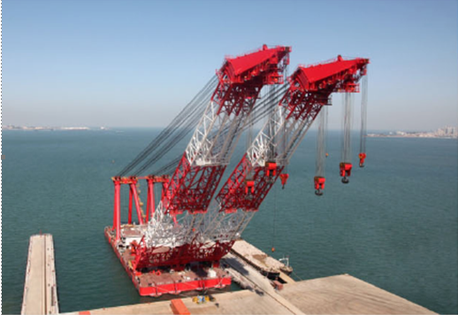 單臂架額定起吊能力1845t 雙臂架額定起吊能力2×1845t 每座臂架配置922.5t主鉤兩支 主鉤最大起升高度108m